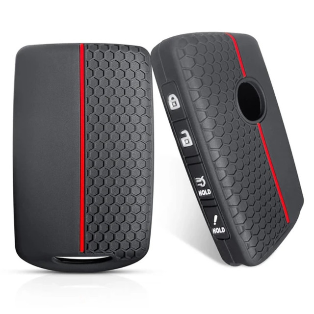 Чорний колір чохла з червоними лініями надає ключу Mazda сучасного та стильного вигляду, а також додає нотки індивідуальності в повсякденне користування. |